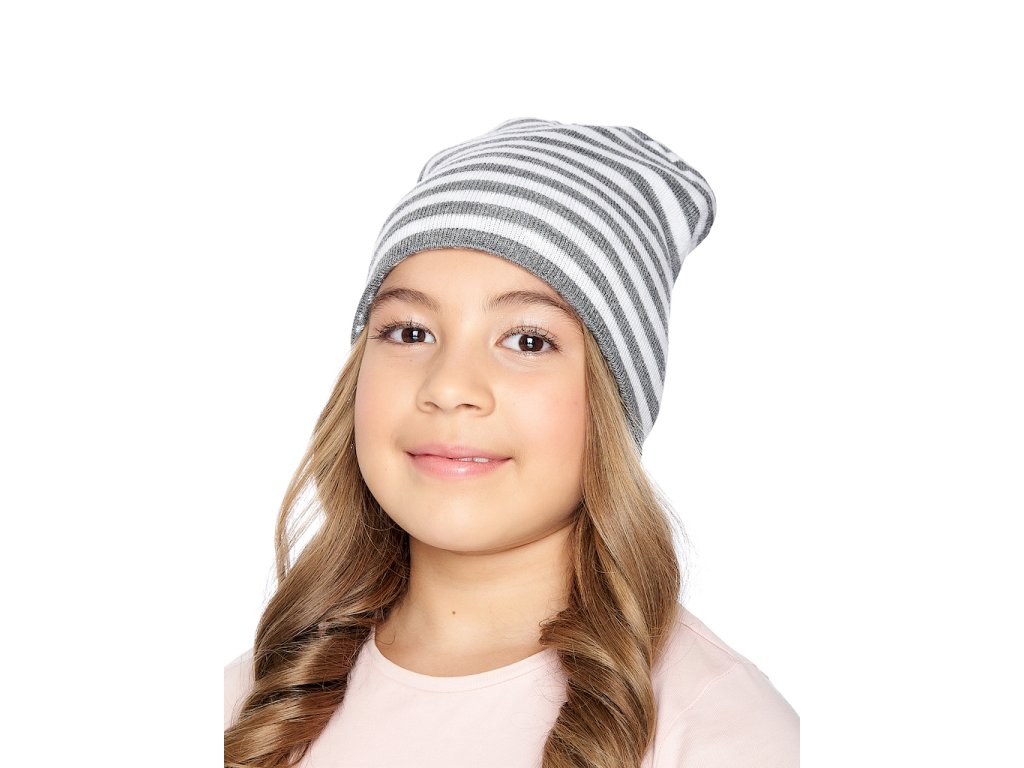 Kvalitní dívčí pletená čepice s podšívkou. Barva: šedá/bílá. Velikost: 54 cm. Materiál: 70% acrylic, 30% vlna.Doplňkové parametry