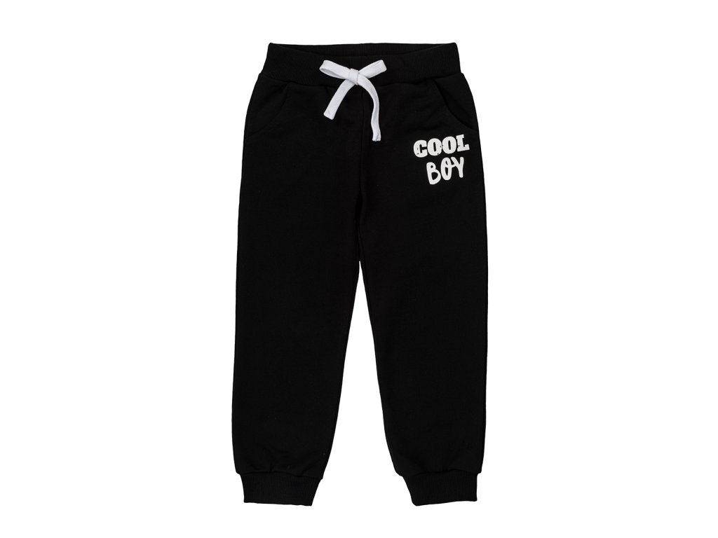 Chlapecké tepláky Cool Boy v černé barvě se zavazováním v pase a se dvěma kapsami po stranách. V pase i na koncích nohavic je elastický lem. Příjemný materiál. 100% bavlna. Velikosti 98 - 122. Vyrobeno v Uzbekistánu. Materiál: 100% bavlna. Látka: Footer (nečesaná teplákovina) 250-260 gr. Návod k údržbě: Při praní se vždy řiďte pokyny uvedenými na štítku! Dostupné velikosti: 98 - 122. Barva: černá.Doplňkové parametry