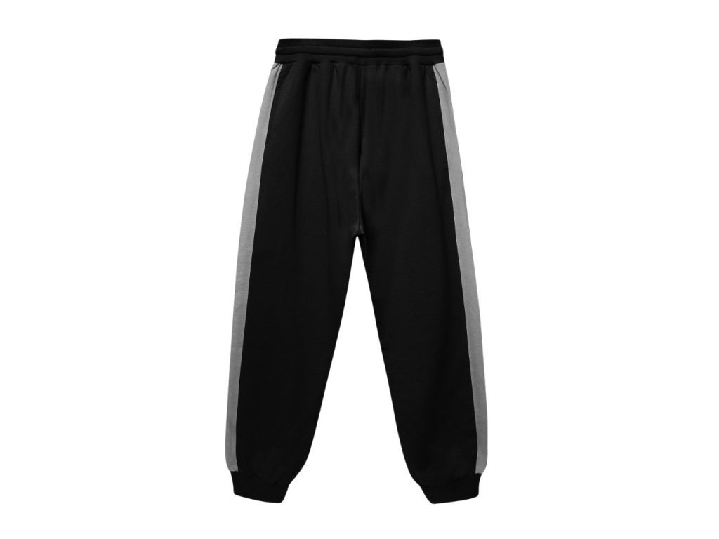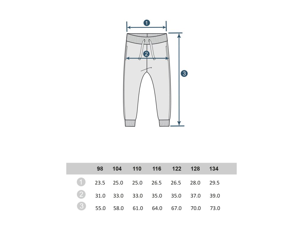Chlapecké tepláky Sport v černé barvě s elagntními šedými pruhy po stranách. Elasický pas se zavazováním a manžety na koncích nohavic se postarají o to, aby vám tepláky perfektně padly. Materiál: 100% bavlna. Velikosti: 98 - 134. Vyrobeno v Uzbekistánu. Materiál: 100% bavlna. Látka: Footer (nečesaná teplákovina) 250-260 g/m2. Návod k údržbě: Při praní se vždy řiďte pokyny uvedenými na štítku! Dostupné velikosti: 98 - 134. Barva: černá.Doplňkové parametry