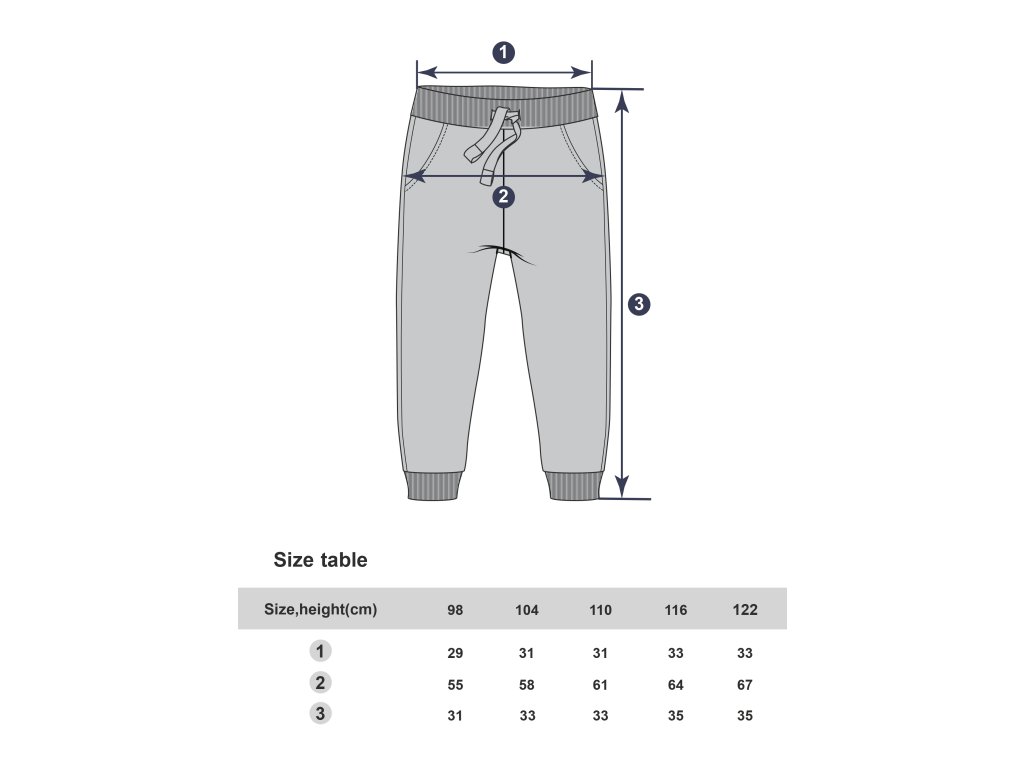 Chlapecké tepláky Summer. Barva: šedý melanž. Neokoukaný design a kvalitní barva odolná proti seprání. Příjemný materiál - 100% bavlna.Velikosti: 98 - 122. Vyrobeno v Uzbekistánu. Materiál: 100% bavlna. Látka: Footer 250-260 gr. Návod k údržbě: Při praní se vždy řiďte pokyny uvedenými na štítku! Dostupné velikosti: 98 - 122. Barva: šedý melanž.