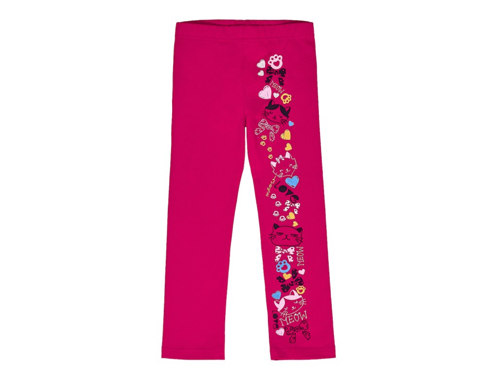 Dívčí legíny Meow v malinové barvě. Střih je rovný a na levé nohavici jsou kočičky a nápis Meow Love. Příjemný a pružný materiál. 95% bavlna a 5% elastan. Velikosti 98 - 122. Vyrobeno v Uzbekistánu. Materiál: 92% bavlna, 8% elastan. Látka: Full lycra 160-170 gr. Návod k údržbě: Při praní se vždy řiďte pokyny uvedenými na štítku! Dostupné velikosti: 98 - 122. Barva: malinová.