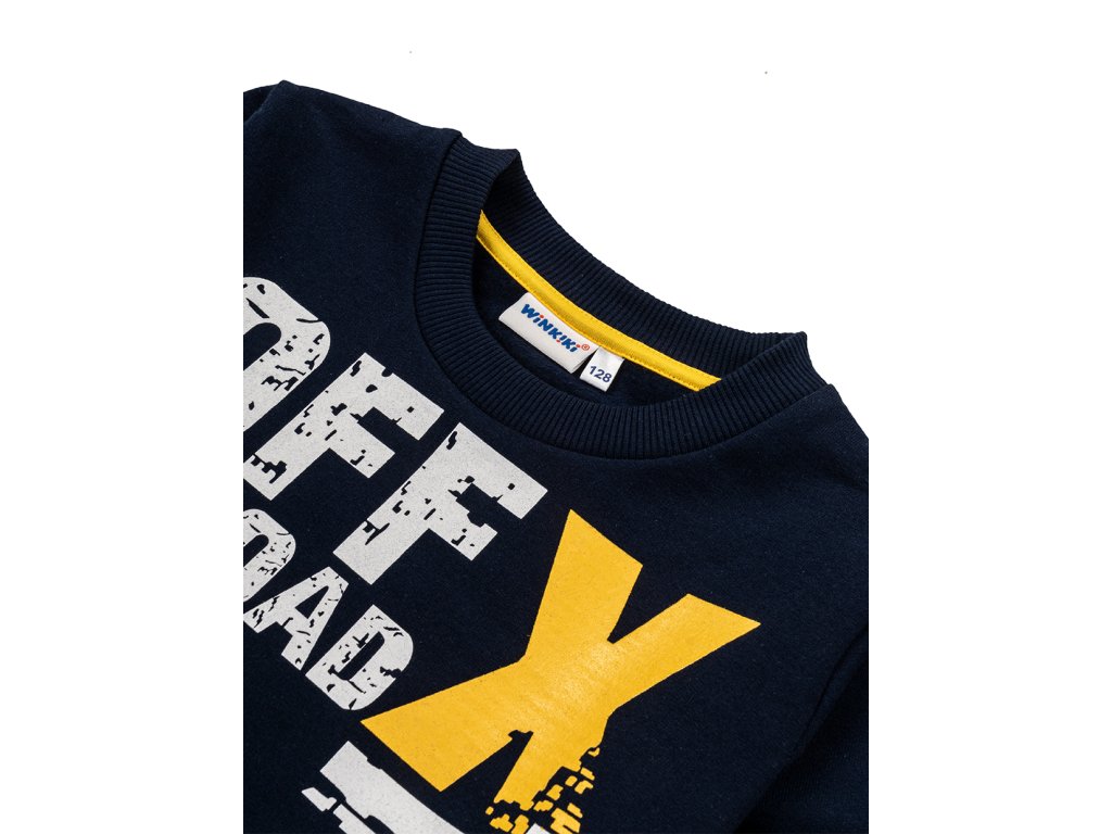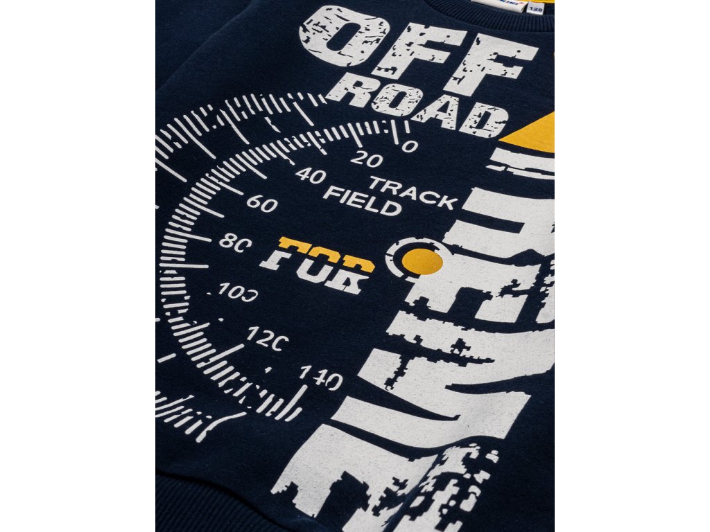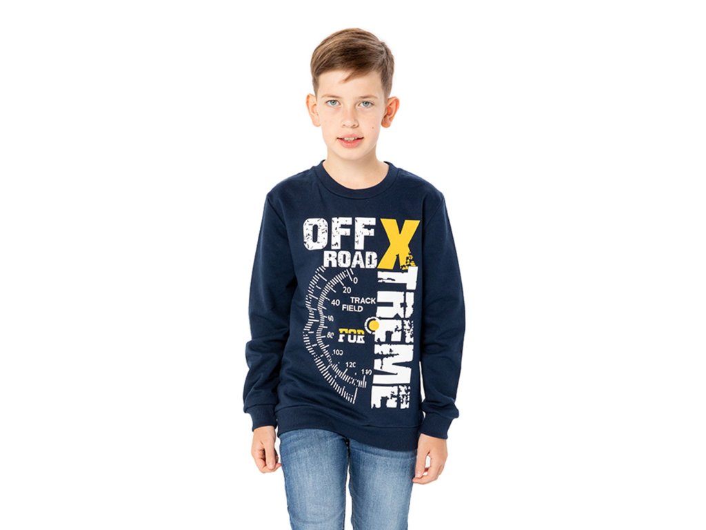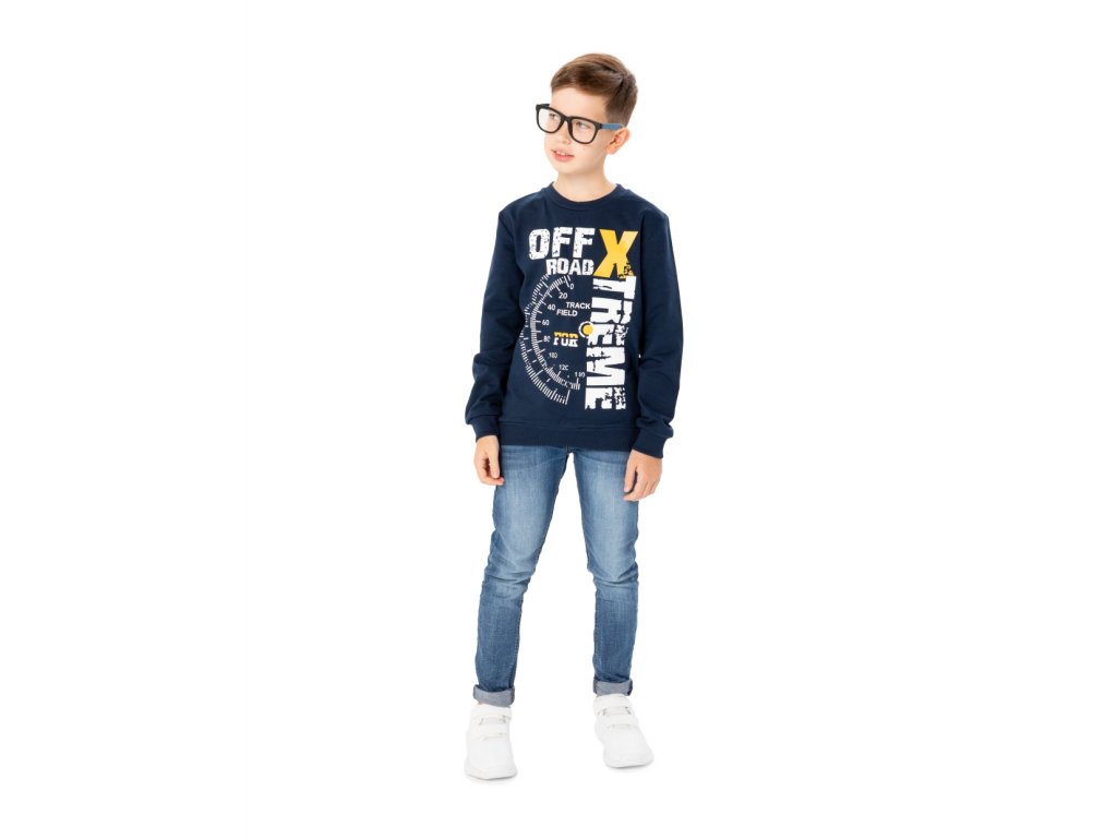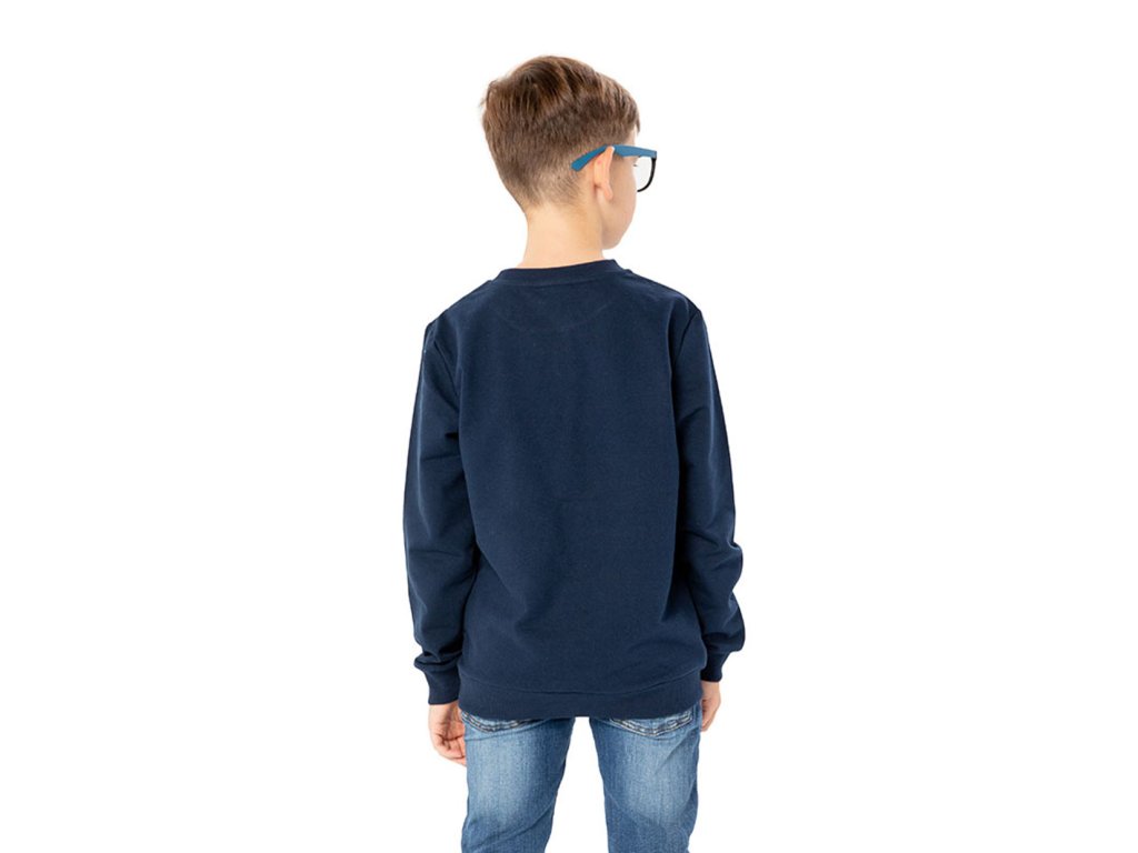 Chlapecká mikina s dlouhým rukávem v tmavě modré barvě s nápisem a obrazky na přední straně. Spodní část mikiny a konce rukávů s elastickými lemy. Příjemný materiál s fleecem na vnitřní straně. 100% bavlna. Velikosti 128 - 152. Vyrobeno v Uzbekistánu. Materiál: 100% bavlna. Látka: Footer (česaná teplákovina) 250-260 gr. Návod k údržbě: Při praní se vždy řiďte pokyny uvedenými na štítku! Dostupné velikosti: 128 - 152. Barva: navy.