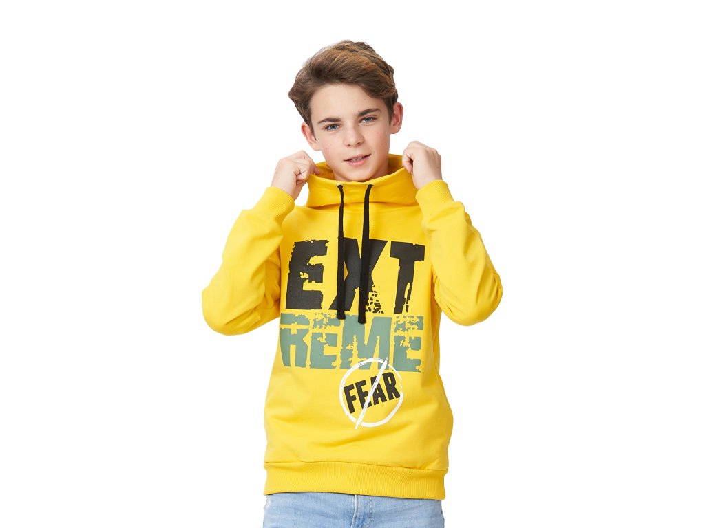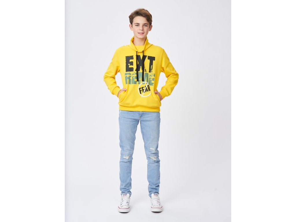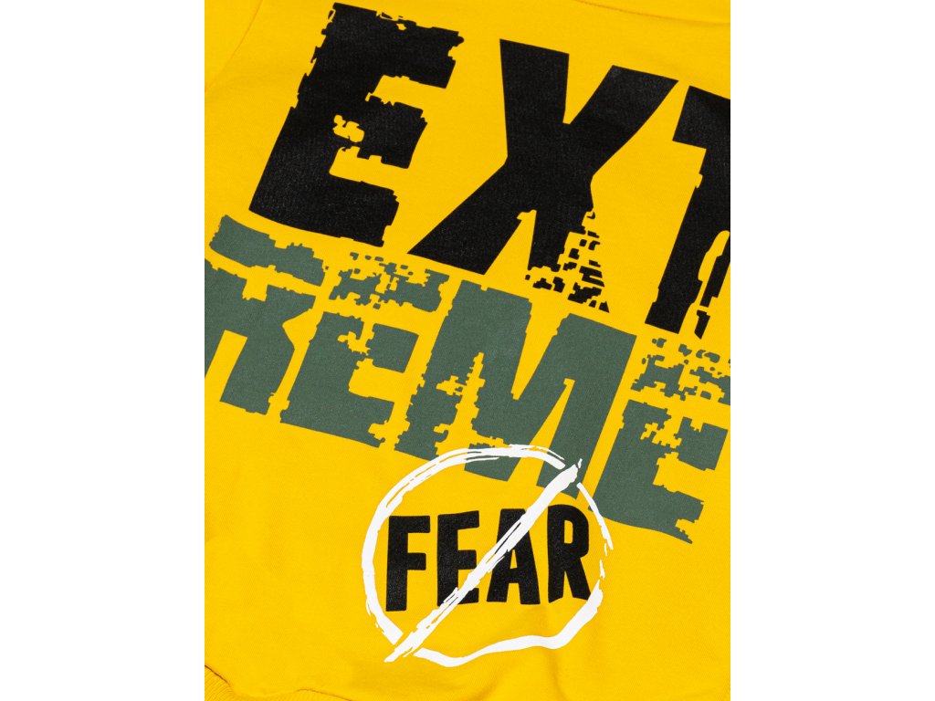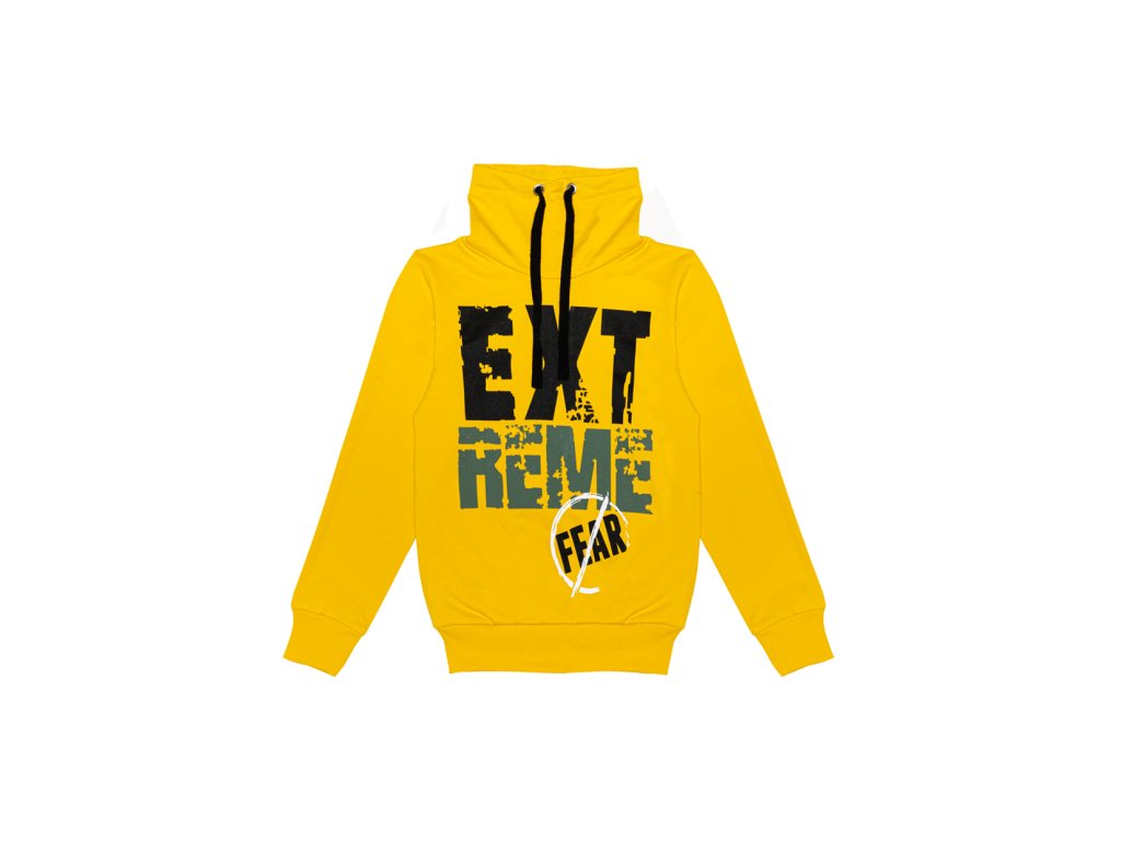 Chlapecká mikina Extreme s dlouhým rukávem ve žluté barvě. Zvýšená látka okolo krku na zavazovaní zabrání studenému počasí proniknout dovnitř. Konce rukávů i konec mikiny je ukončen elastickými lemy. Příjemný a teplý materiál. 100% bavlna. Vyrobeno v Uzbekistánu. Materiál: 100% bavlna. Látka: Footer (nečesaná teplákovina) 250-260 gr. Návod k údržbě: Při praní se vždy řiďte pokyny uvedenými na štítku! Dostupné velikosti: 128 - 152. Barva: žlutá.Doplňkové parametry