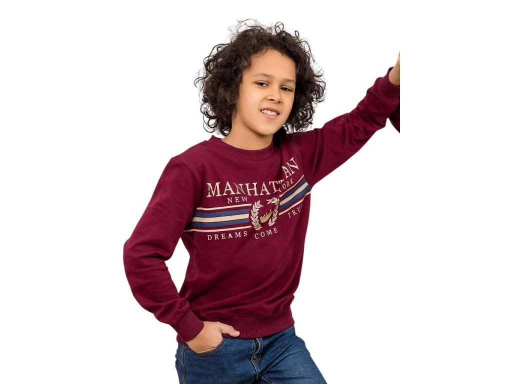 Chlapecké mikina Manhattan. Barva: bordo. Neokoukaný design a kvalitní barva odolná proti seprání. Příjemný materiál - 100% bavlna.Velikosti: 140 - 164. Vyrobeno v Uzbekistánu. Materiál: 100% bavlna. Látka: Footer 250-260 gr. Návod k údržbě: Při praní se vždy řiďte pokyny uvedenými na štítku! Dostupné velikosti: 140 - 164. Barva: bordo.