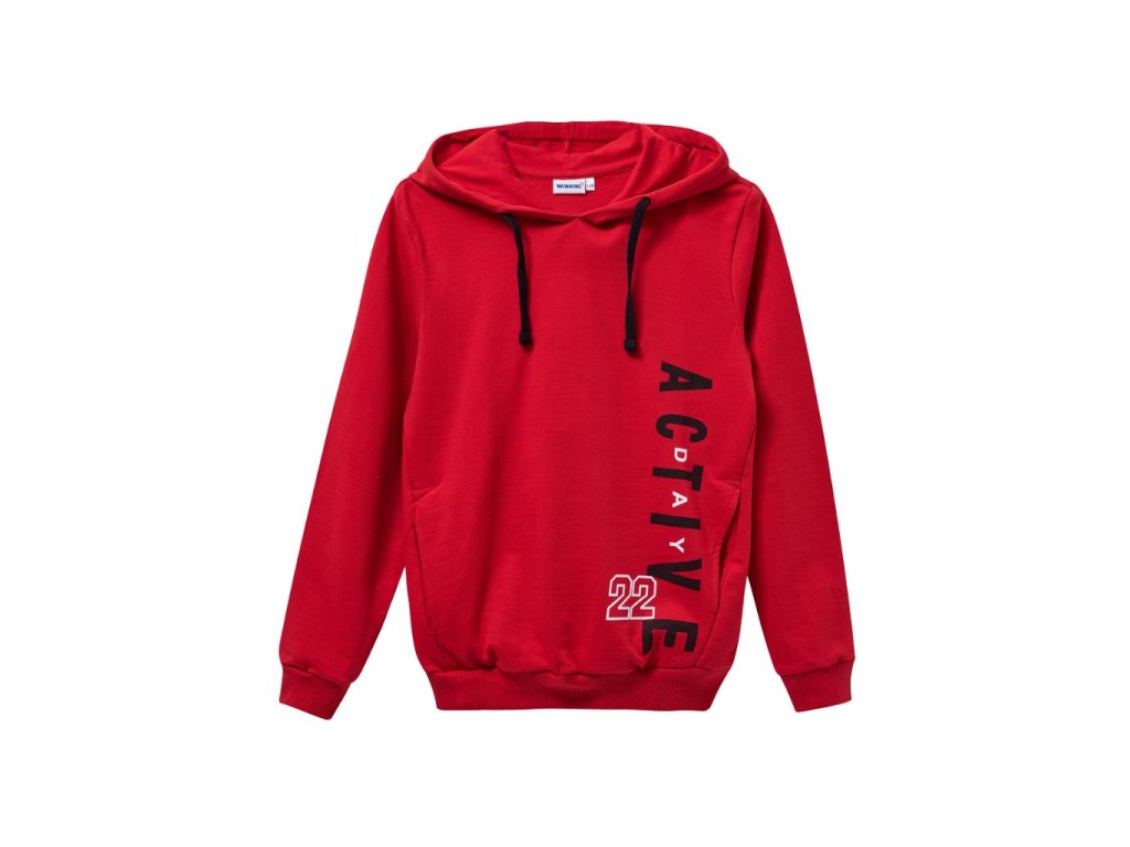 Chlapecká mikina s kapucí Active z kolekce Sport. Zajímavý design, kvalitní látka a barvy, které po vyprání nevyblednou. Vhodné do školy i na ven. Barva: Červená. Materiál: 100% bavlna. Velikosti: 146 - 170. Vyrobeno v Uzbekistánu. Materiál: 100% bavlna. Látka: Supreme 150-160 g. Návod k údržbě: Při praní se vždy řiďte pokyny uvedenými na štítku! Dostupné velikosti: 146 - 170. Barva: červená.