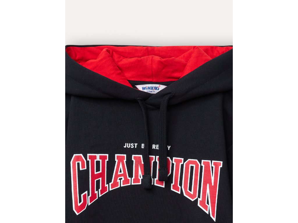 Chlapecká mikina s kapucí Champion v barvě černá. Ideální do podzimních měsíců. Zahřeje a potěší. Vyrobeno v Uzbekistánu z přírodního materiálu 100% bavlna. Látka je nečesaná teplákovina. Ve velikostech 122 - 170. Vyrobeno v Uzbekistánu. Materiál: 100% bavlna. Látka: Nečesaná teplákovina. Návod k údržbě: Při praní se vždy řiďte pokyny uvedenými na štítku! Dostupné velikosti: 122 - 170. Barva: černá.