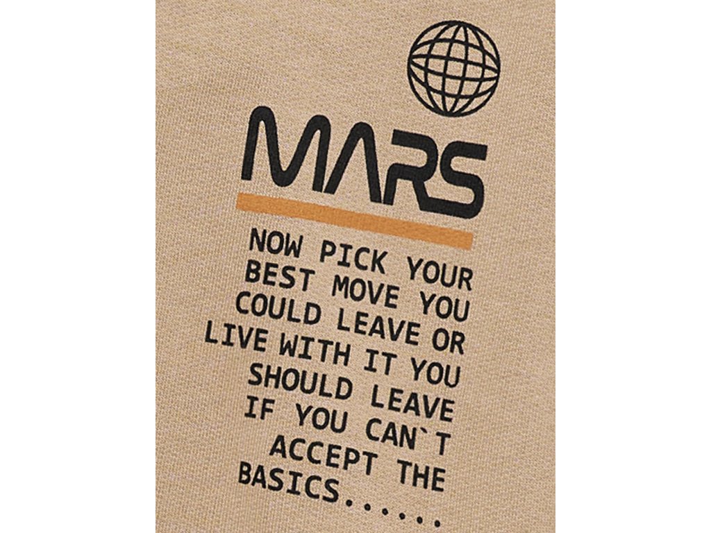 Chlapecká mikina s kapucí Mars v barvě béžová. Ideální do podzimních měsíců. Zahřeje a potěší. Vyrobeno v Uzbekistánu z přírodního materiálu 100% bavlna. Látka je nečesaná teplákovina. Ve velikostech 122 - 170. Vyrobeno v Uzbekistánu. Materiál: 100% bavlna. Látka: Nečesaná teplákovina. Návod k údržbě: Při praní se vždy řiďte pokyny uvedenými na štítku! Dostupné velikosti: 122 - 170. Barva: béžová.Doplňkové parametry