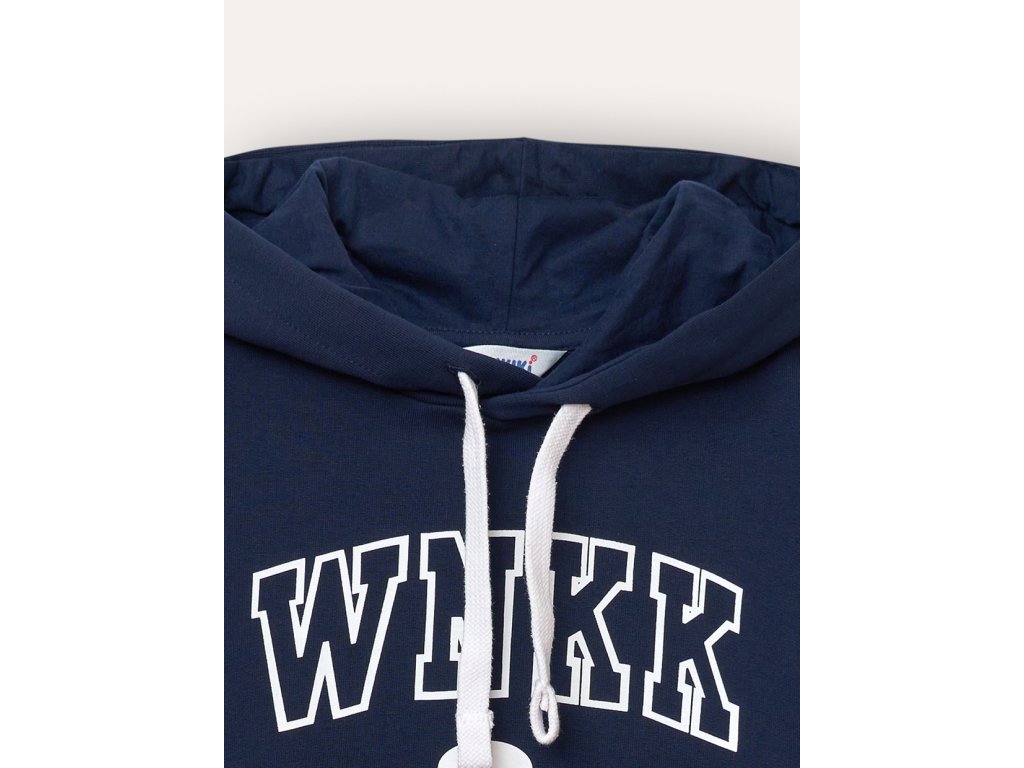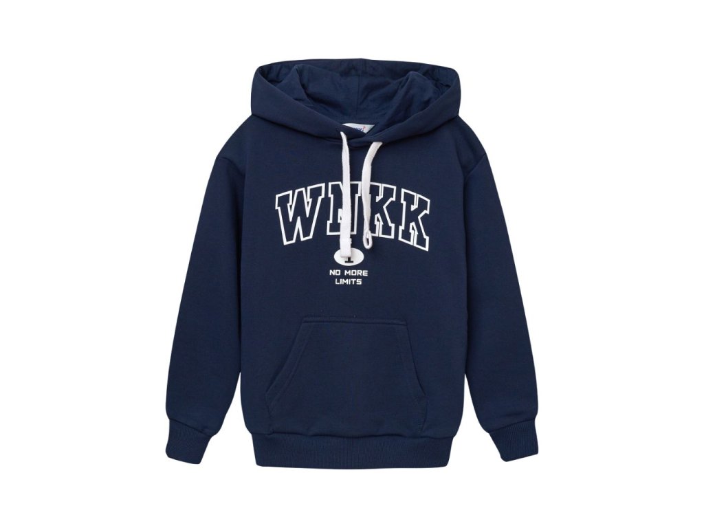 Chlapecká mikina s kapucí WNKK v barvě navy. Ideální do podzimních měsíců. Zahřeje a potěší. Vyrobeno v Uzbekistánu z přírodního materiálu 100% bavlna. Látka je nečesaná teplákovina. Ve velikostech 122 - 170. Vyrobeno v Uzbekistánu. Materiál: 100% bavlna. Látka: Nečesaná teplákovina. Návod k údržbě: Při praní se vždy řiďte pokyny uvedenými na štítku! Dostupné velikosti: 122 - 170. Barva: navy.Doplňkové parametry