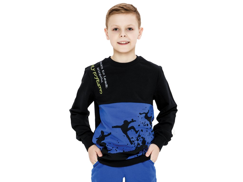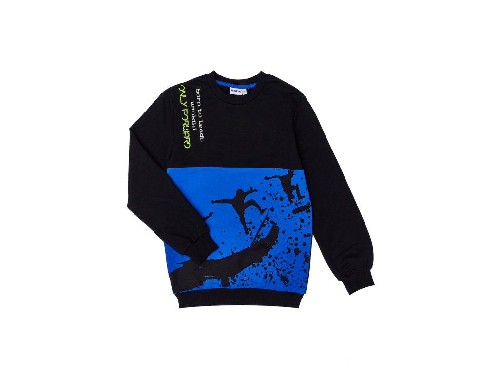 Chlapecké mikina Skate. Barva: černá/kobaltová. Neokoukaný design a kvalitní barva odolná proti seprání. Příjemný materiál - 100% bavlna.Velikosti: 140 - 164. Vyrobeno v Uzbekistánu. Materiál: 100% bavlna. Látka: Footer 240 g. Návod k údržbě: Při praní se vždy řiďte pokyny uvedenými na štítku! Dostupné velikosti: 140 - 164. Barva: černá/kobaltová.