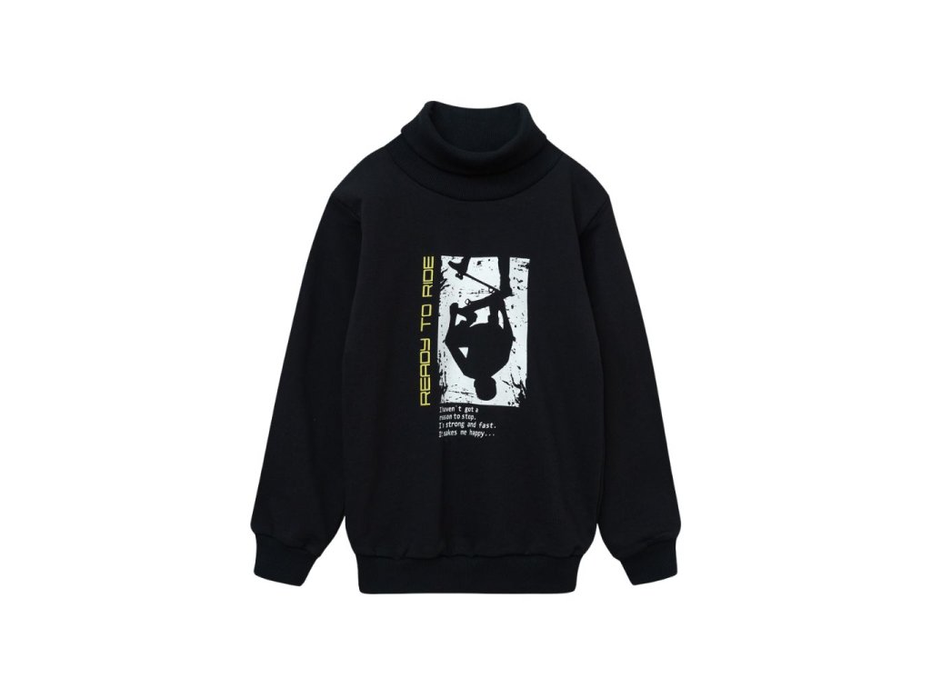 Chlapecký rolák Ready to Ride v barvě černá. Ideální do podzimních měsíců. Zahřeje a potěší. Vyrobeno v Uzbekistánu z přírodního materiálu 100% bavlna. Látka je nečesaná teplákovina. Ve velikostech 122 - 170. Vyrobeno v Uzbekistánu. Materiál: 100% bavlna. Látka: Nečesaná teplákovina. Návod k údržbě: Při praní se vždy řiďte pokyny uvedenými na štítku! Dostupné velikosti: 122 - 170. Barva: černá.Doplňkové parametry