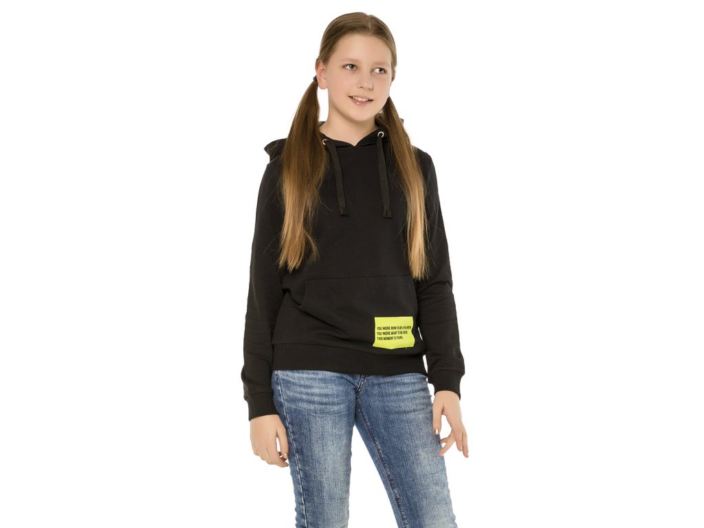 Dívčí mikina s kapucí Sport. Barva: černá. Neokoukaný design a kvalitní barva odolná proti seprání. Příjemný materiál - 100% bavlna.Velikosti: 140 - 164. Vyrobeno v Uzbekistánu. Materiál: 100% bavlna. Látka: Footer 240 g. Návod k údržbě: Při praní se vždy řiďte pokyny uvedenými na štítku! Dostupné velikosti: 140 - 164. Barva: černá.Doplňkové parametry