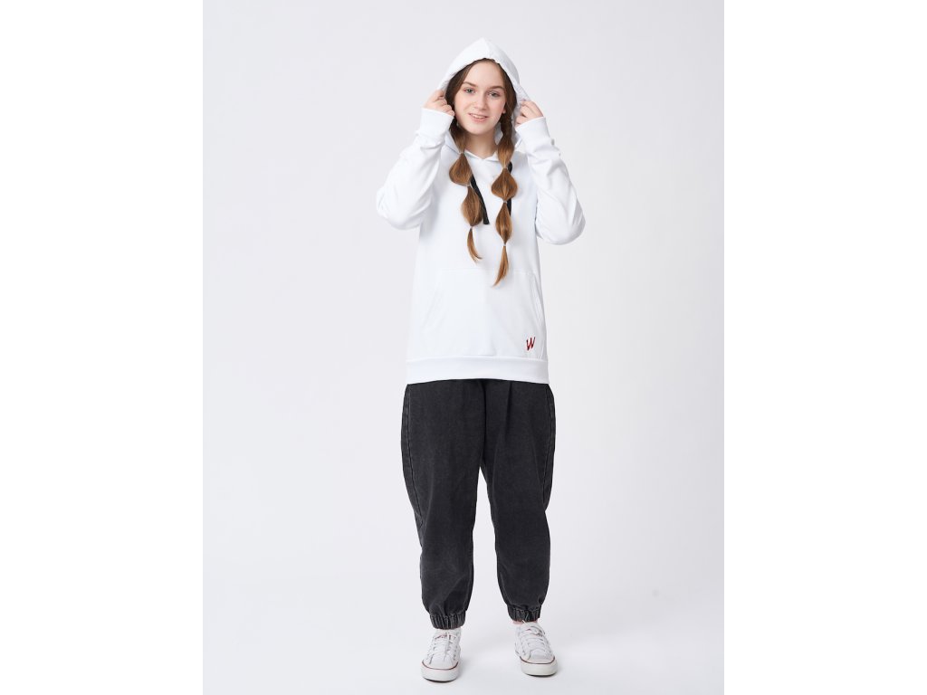 Dívčí mikina W s kapucí se zavazováním v bílé barvě s kapsami na přední straně. Spodní část mikiny a konce rukávů s elastickými lemy. Příjemný materiál. 100% bavlna. Velikosti 140 - 164. Vyrobeno v Uzbekistánu. Materiál: 100% bavlna. Látka: Interlok 180-190 gr. Návod k údržbě: Při praní se vždy řiďte pokyny uvedenými na štítku! Dostupné velikosti: 140 - 164. Barva: bílá.Buďte první, kdo napíše příspěvek k této položce.