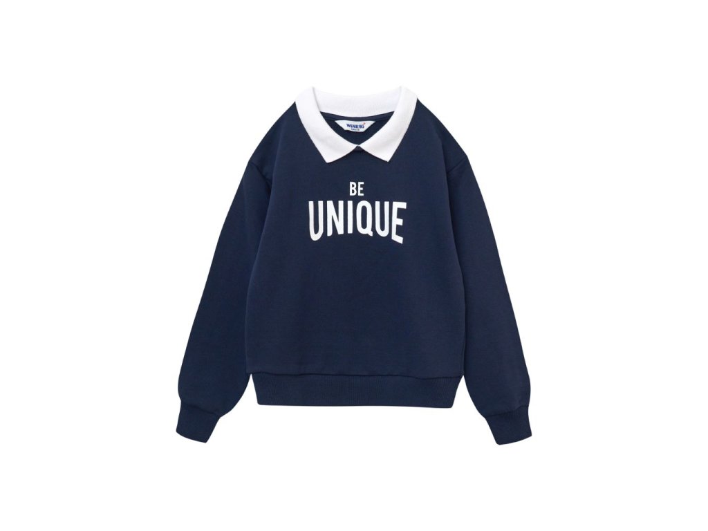 Dívčí mikina Unique v barvě navy. Ideální do podzimních měsíců. Zahřeje a potěší. Vyrobeno v Uzbekistánu z přírodního materiálu 100% bavlna. Látka je nečesaná teplákovina. Ve velikostech 122 - 164.