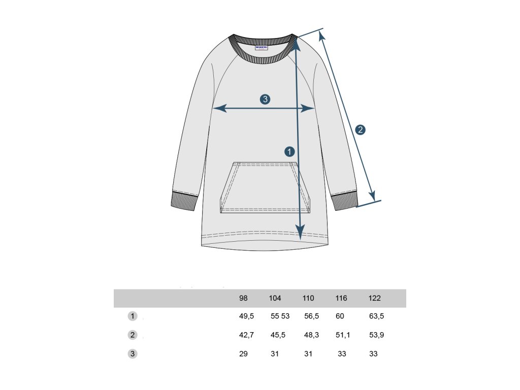 Dívčí šaty Blessed v tmavě modré barvě s nápisem 'Blessed', s pejskem a velkou kapsou na přední straně. Konce rukávů s elastickými lemy. Příjemný materiál s fleecem na vnitřní straně. 100% bavlna. Velikosti 98 - 122. Vyrobeno v Uzbekistánu. Materiál: 100% bavlna. Látka: Footer (česaná teplákovina) 250-260 gr. Návod k údržbě: Při praní se vždy řiďte pokyny uvedenými na štítku! Dostupné velikosti: 98 - 122. Barva: navy.Doplňkové parametry