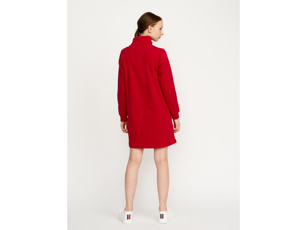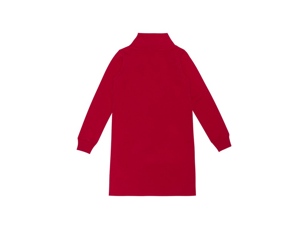 Dívčí šaty tmavě červené barvy s dlouhým rukávem, s oboustrannou velkou kapsou v přední části a elastickým lemem na rukávech. Vysoký límec se zavazováním. Velice přijemny přirodní material. 100 % bavlna. Velikosti 128 - 152. Vyrobeno v Uzbekistánu. Materiál: 100% bavlna. Látka: Footer (nečesaná teplákovina) 250-260 gr. Návod k údržbě: Při praní se vždy řiďte pokyny uvedenými na štítku! Dostupné velikosti: 128 - 152. Barva: malinová.Doplňkové parametry