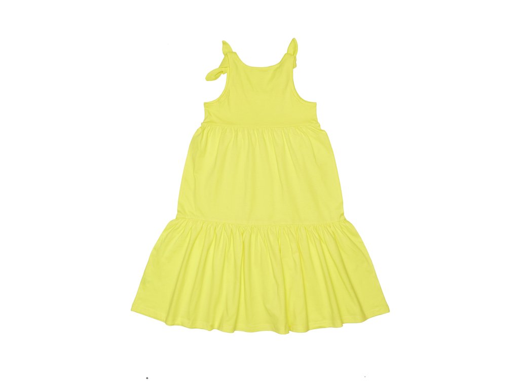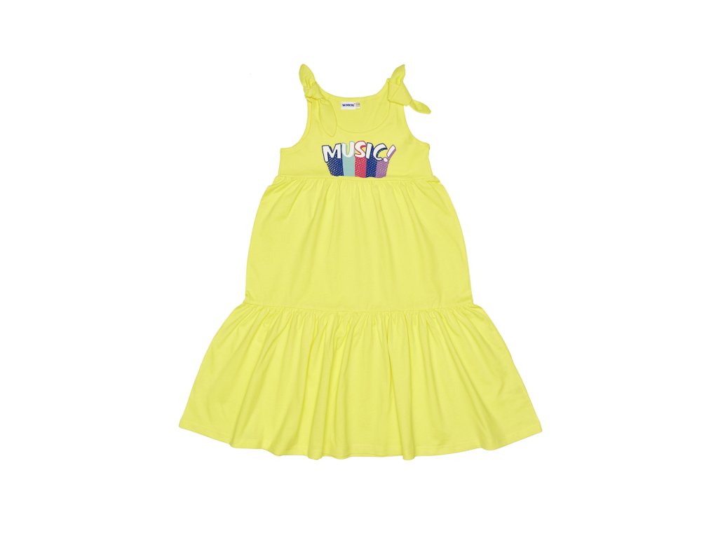Letní dívčí šaty Music ve žluté barvě. Horní část je bez rukávů na zavazování na ramenou. Na přední straně je nápis Music. Velmi příjemný materiál - 100% bavlna. Velikosti: 128 - 152. Vyrobeno v Uzbekistánu. Materiál: 100% bavlna. Látka: Supreme 150-160 g. Návod k údržbě: Při praní se vždy řiďte pokyny uvedenými na štítku! Dostupné velikosti: 128 - 152. Barva: žlutá.Doplňkové parametry