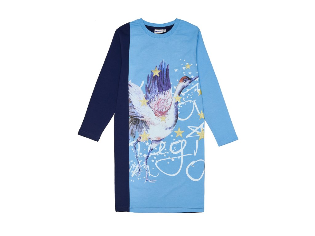 Dívčí šaty Own Magic s dlouhým rukávem v kombinaci barev modrá a tmavě modrá NAVY s kouzelným Flamingo a s hvězdami. Velmi elegantí. Příjemný materiál - 100% bavlna. Velikosti: 128 - 152. Vyrobeno v Uzbekistánu. Materiál: 100% bavlna. Látka: Footer 220 g. Návod k údržbě: Při praní se vždy řiďte pokyny uvedenými na štítku! Dostupné velikosti: 128 - 152. Barva: modrá/navy.Doplňkové parametry