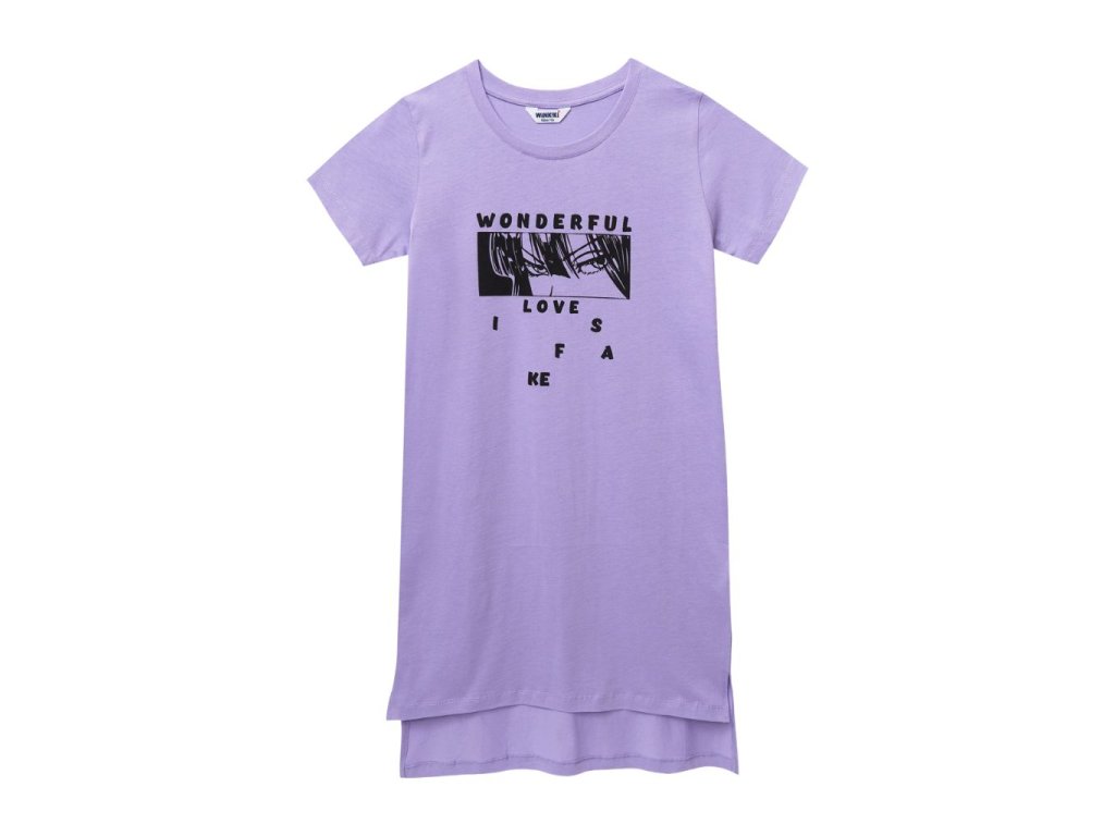 Dívčí šaty Wonderful s krátkým rukávem v liliové barvě jsou lehké, příjemné a elegantní. Materiál: 100% bavlna. Velikosti: 128 - 164. Vyrobeno v Uzbekistánu. Materiál: 100% bavlna. Látka: Suprem 150-160 g/m2. Návod k údržbě: Při praní se vždy řiďte pokyny uvedenými na štítku! Dostupné velikosti: 128 - 164. Barva: liliová.Doplňkové parametry