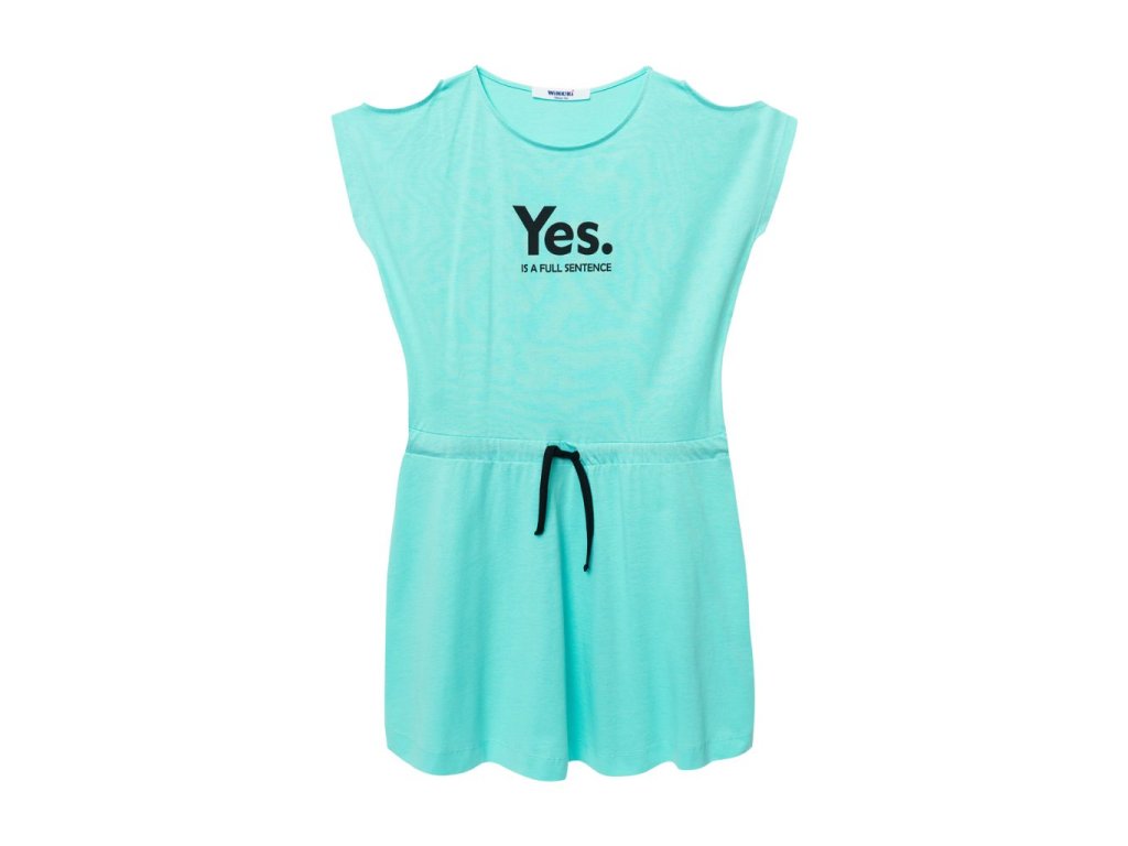 Dívčí šaty Yes s krátkým rukávem v tyrkysové barvě jsou lehké, příjemné a elegantní. V pase na stažení. Materiál: 100% bavlna. Velikosti: 140 - 164. Vyrobeno v Uzbekistánu. Materiál: 100% bavlna. Látka: Suprem 150-160 g/m2. Návod k údržbě: Při praní se vždy řiďte pokyny uvedenými na štítku! Dostupné velikosti: 140 - 164. Barva: tyrkysová.Doplňkové parametry