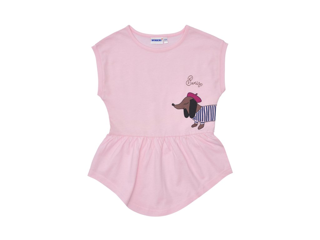 Dívčí tunika Mon Amour z elegantní kolekce Paris. Prodloužená část je lehce nařasená. Hodí se s legginami nebo i s kraťáskami. Příjemný a lehký materiál oceníte v horkém létě při cestách a procházkách venku nebo při odpočinku doma. Hodí se Vyrobeno v Uzbekistánu. Materiál: 100% bavlna. Látka: Supreme 150-160 g. Návod k údržbě: Při praní se vždy řiďte pokyny uvedenými na štítku! Dostupné velikosti: 98 - 122. Barva: růžová.Buďte první, kdo napíše příspěvek k této položce.