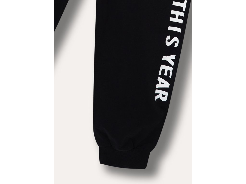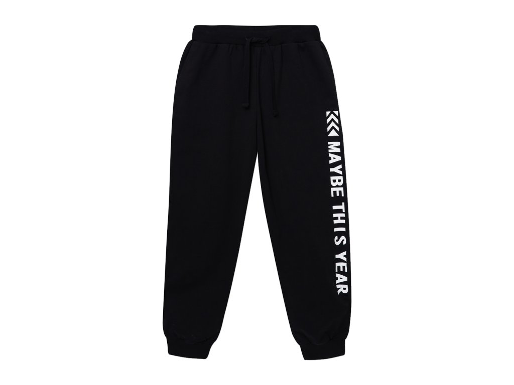 Chlapecké tepláky Maybe v černé barvě s elastickými manžetami v pase a na koncích nohavic. V pase navíc na zavazování. Materiál: 100% bavlna. Velikosti: 128 - 170. Vyrobeno v Uzbekistánu. Materiál: 100% bavlna. Látka: Footer (nečesaná teplákovina) 250-260 g/m2 Návod k údržbě: Při praní se vždy řiďte pokyny uvedenými na štítku! Dostupné velikosti: 128 - 170. Barva: černá.