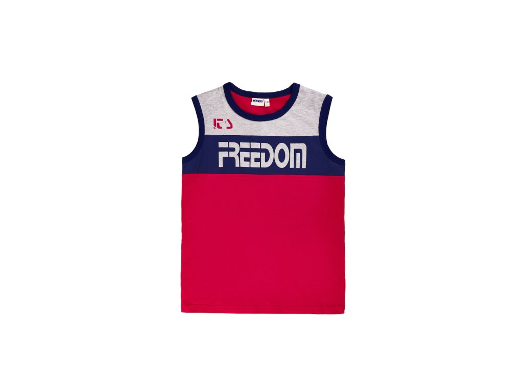 Chlapecké tričko Freedom z kolekce MyVibe bez rukávů v červené barvě. Zajímavý a neokoukaný design. Idealní na sport nebo na letní výpravy k vodě. Kvalitní 100% bavlna. Barvy: červená/NAVY, černá Velikosti: 140 - 164 Vyrobeno v Uzbekistánu. Materiál: 100% bavlna. Látka: Supreme 150-160 gr. Návod k údržbě: Při praní se vždy řiďte pokyny uvedenými na štítku! Dostupné velikosti: 140 - 164. Barva: červená/navy.Doplňkové parametry