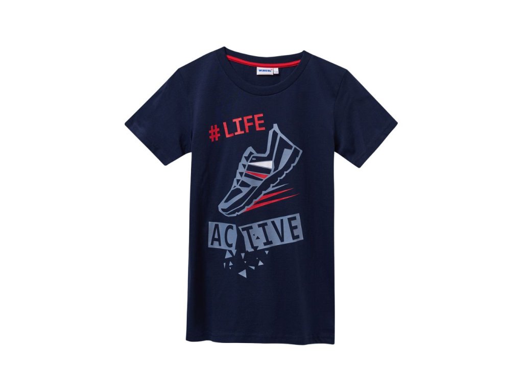 Chlapecké tričko Active z kolekce Sport. Zajímavý design, kvalitní látka a barvy, které po vyprání nevyblednou. Vhodné do školy i na ven. Barva: Navy. Materiál: 100% bavlna. Velikosti: 146 - 170. Vyrobeno v Uzbekistánu. Materiál: 100% bavlna. Látka: Footer (nečesaná teplákovina) 250-260 g. Návod k údržbě: Při praní se vždy řiďte pokyny uvedenými na štítku! Dostupné velikosti: 146 - 170. Barva: navy.Doplňkové parametry