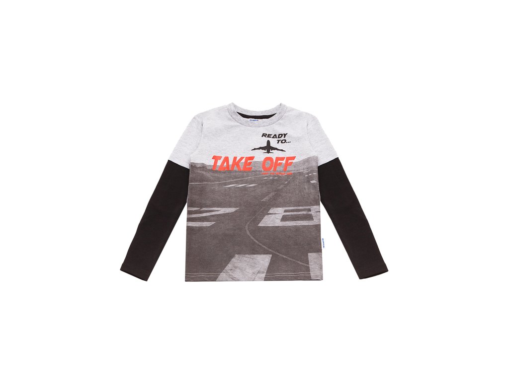 Chlapecké tričko Take Off s dlouhým rukávem v šedé barvě. Rukávy jsou v černé barvě. Na přední straně je runway a nápis Ready to Take Off. Příjemný a pružný materiál - 92% bavlna a 8% elastan. Velikosti 128 - 152. Vyrobeno v Uzbekistánu. Materiál: 92% bavlna, 8% elastan. Látka: Interlock s elastanem 245 gr. Návod k údržbě: Při praní se vždy řiďte pokyny uvedenými na štítku! Dostupné velikosti: 128 - 152. Barva: šedý melanž/černá.Doplňkové parametry