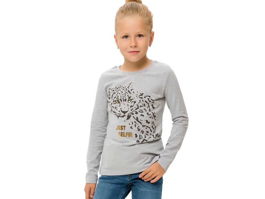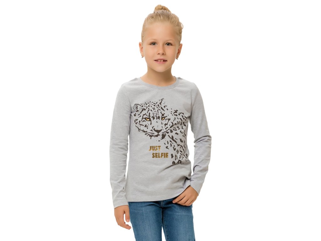 Dívčí tričko Just Selfie v šedé barvě s dlouhým rukávem. Na přední straně je vyobrazený Leopard s nápisem Just Selfie. Příjemný a pružný materiál. 100% bavlna. Velikosti 128 - 152. Vyrobeno v Uzbekistánu. Materiál: 95% bavlna, 5% elastan. Látka: Supreme s elastanem 220 gr. Návod k údržbě: Při praní se vždy řiďte pokyny uvedenými na štítku! Dostupné velikosti: 128 - 152. Barva: šedý melanž.Doplňkové parametry