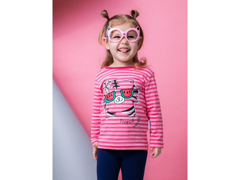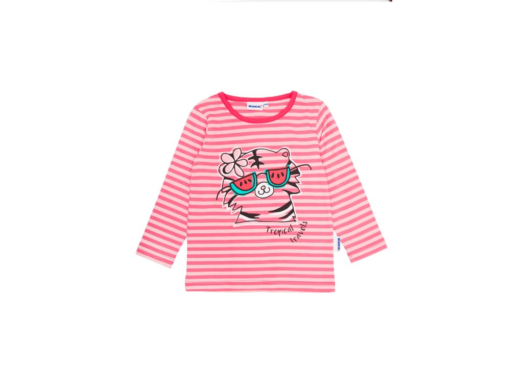 Dívčí tričko s dlouhým rukávem Tropical - růžová - pruhy