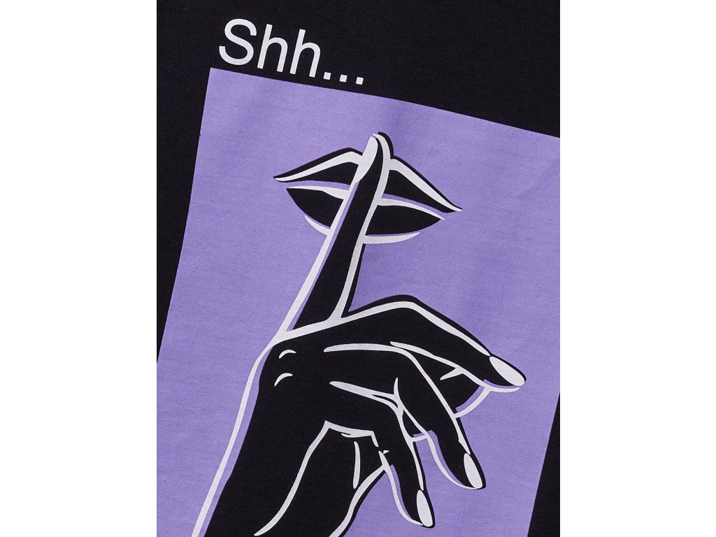 Dívčí tričko Shhh z kolekce Lifestyle. Zajímavý design, kvalitní látka a barvy, které po vyprání nevyblednou. Vhodné do školy i na ven. Barva: Černá. Materiál: 100% bavlna. Velikosti: 140 - 164. Vyrobeno v Uzbekistánu. Materiál: 100% bavlna. Látka: Supreme 150-160 g. Návod k údržbě: Při praní se vždy řiďte pokyny uvedenými na štítku! Dostupné velikosti: 140 - 164. Barva: černá.Doplňkové parametry